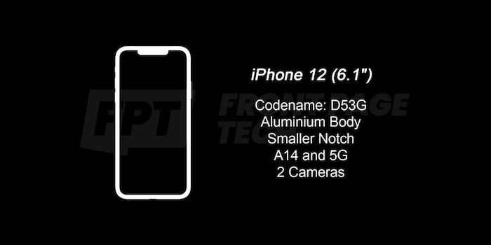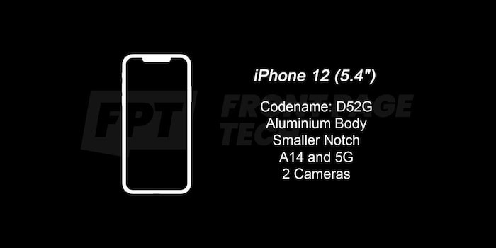 Dựa theo hình ảnh ảnh rò rỉ được leaker Jon Prosser chia sẻ, iPhone 12 và iPhone 12 Plus sẽ có mã sản phần lần lượt là D52G và D53G. Vì đây là bản nâng cấp của iPhone 11 nên phiên bản iPhone 12 và iPhone 12 Plus vẫn chỉ được trang bị cụm camera kép ở mặt lưng và có khung máy bằng nhôm. Trên lý thuyết, những chiếc smartphone này sẽ trông gần như giống hệt thế hệ trước.