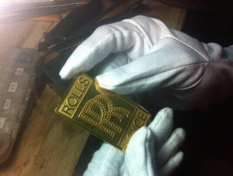 Công đoạn làm chiếc ốp có logo Rolls-Royce bằng vàng và đính kim cương.