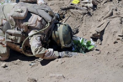 IS đã nhét hàng trăm thanh niên lên xe tải và nói rằng họ được trao trả về gia đình. Tuy nhiên, họ bị đưa tới một bờ sông gần đó, xếp hàng và gục xuống bởi súng máy ở cự ly gần. Ảnh hiện trường cho thấy hàng nghìn người xếp chồng lên nhau, tạo thành một nấm mồ tập thể trong sa mạc.