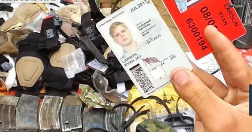 Các bức ảnh chụp súng phóng lựu di động, đài, lựu đạn cùng một số dụng cụ khác, BBC đưa tin ngày 7/8. Trong số này còn có thẻ tên của binh sĩ Ryan Larson.