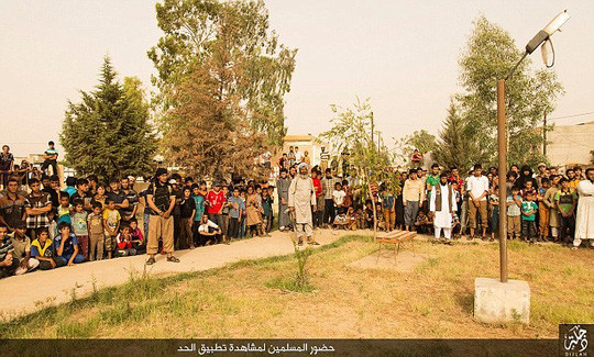 Tờ Daily Mail (Anh) hôm 16-6 đăng tải các bức ảnh IS hành quyết 4 tù nhân nam bằng hình thức ném đá tới chết. Tất cả đều bị buộc tội ngoại tình, theo luật Hồi giáo Sharia thì phải bị xử tử, bất kể là nam hay nữ.