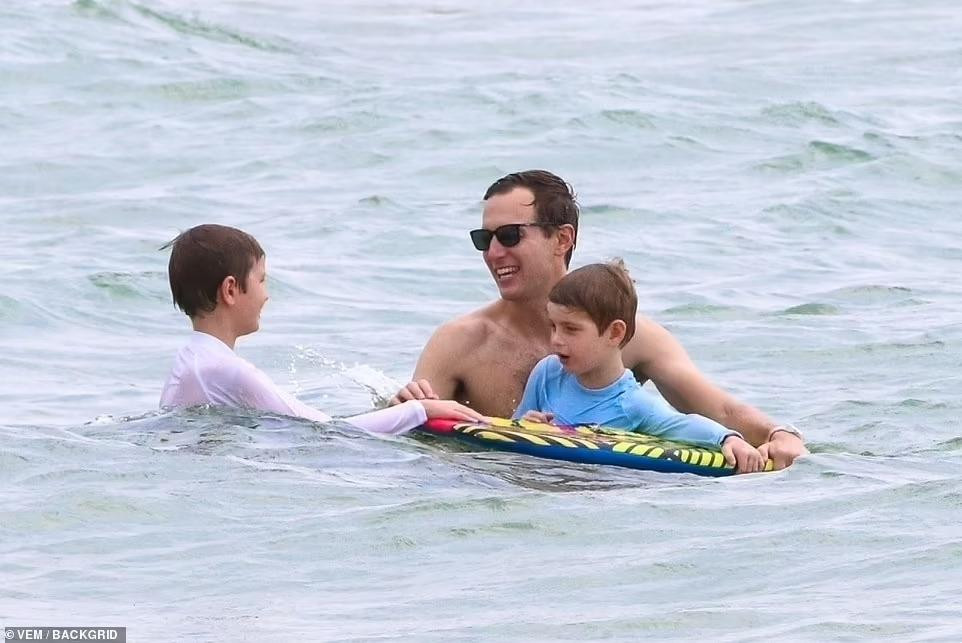 | Kết thúc buổi đi chơi, Jared dẫn hai con rời bãi biển, còn Ivanka không đi cùng chồng con. |