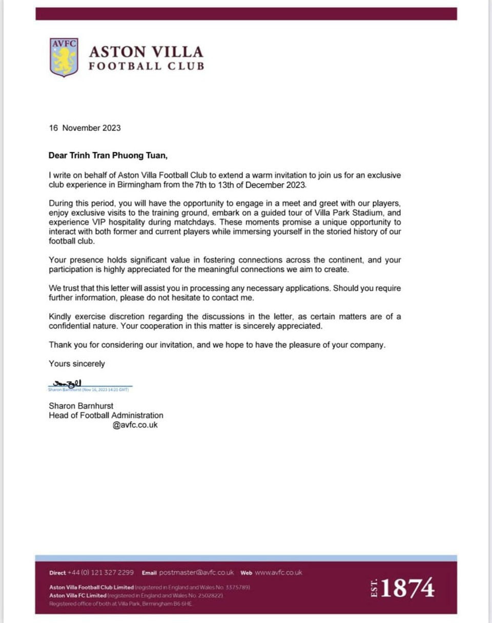 “Được tập huấn, giao lưu cùng các cầu thủ đội một và trụ cột của câu lạc bộ (CLB), tham quan sân vận động, tận hưởng trận cầu tại EPL và học hỏi cách nước bạn làm bóng đá tại thành phố Birmingham. Đây là những trải nghiệm tuyệt vời đối với ca sĩ Jack - J97 sau khi nhận được thư mời của chính CLB Aston Villa. Việc Jack J97 mặc trang phục của CLB Aston Villa khi thực hiện những hoạt động nêu trên là hiển nhiên để thể hiện phép lịch sự và sự tôn trọng với thiện ý của CLB", phía công ty quản lý cho hay.