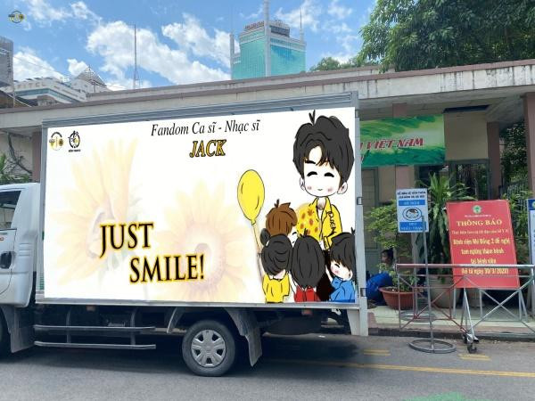 Để động viên tinh thần các bệnh nhi nhân dịp Quốc tế Thiếu nhi năm nay, nhất là trong giai đoạn chống dịch COVID-19 và giãn cách xã hội ở TP.HCM. Đoàn thiện nguyện fandom của nghệ sĩ Jack đã gửi đến các bé xe quà Just Smile với thông điệp "giữ mãi tiếng cười trong trẻo", nhằm mục đích khích lệ tinh thần các bệnh nhi.