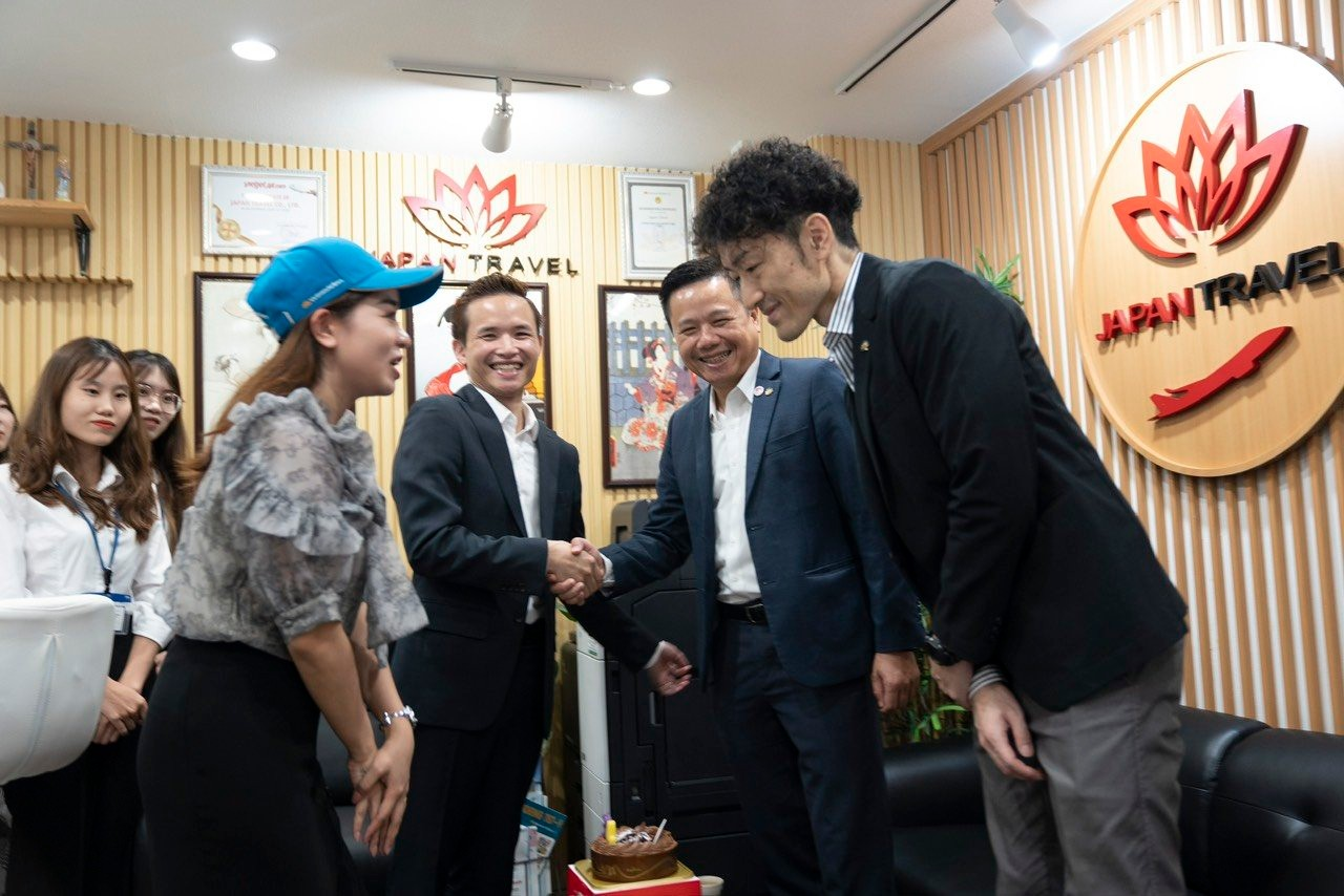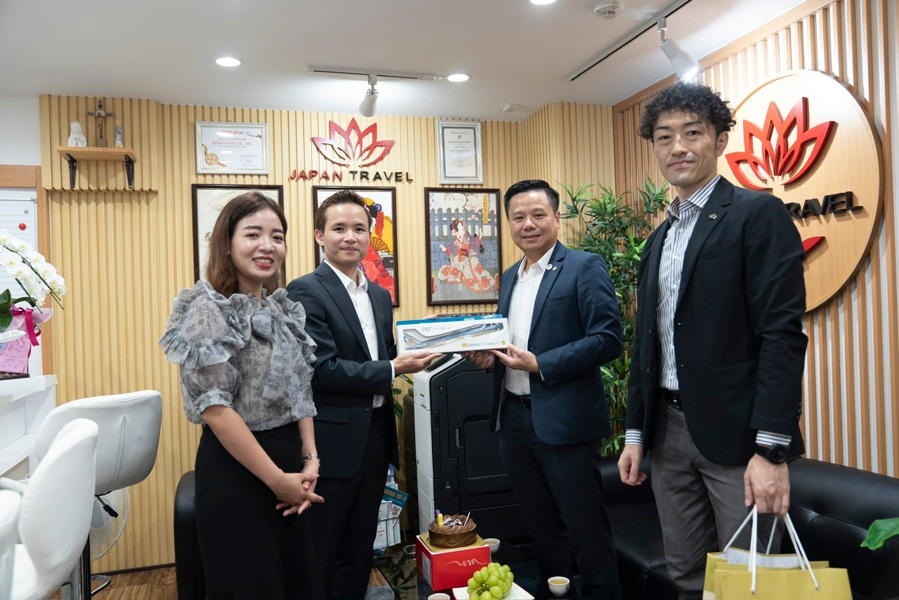 Tham dự chuyến thăm lần này có Giám đốc và Sales Staff đại diện của Hãng Hàng Không Quốc Gia Vietnam Airlines tại Nhật. Buổi gặp mặt diễn ra vô cùng vui vẻ, ấm cúng tại Văn Phòng Công ty Japan Travel Nhật Bản. Trong buổi gặp mặt, đại điện Hãng đã có những thăm hỏi, động viên chân thành. Hai bên cũng có cơ hội trao đổi, thống nhất mở rộng và tăng cường liên kết hợp tác, nhằm thúc đẩy doanh số cung cấp vé máy bay quốc tế hai chiều Nhật-Việt.