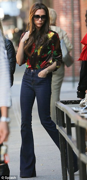 TPO - Mới đây, nhà thiết kế Victoria Beckham diện quần jeans ôm đùi dáng ống vẩy kết hợp với áo sơ họa tiết khiến thân hình cô càng mảnh khảnh hơn.