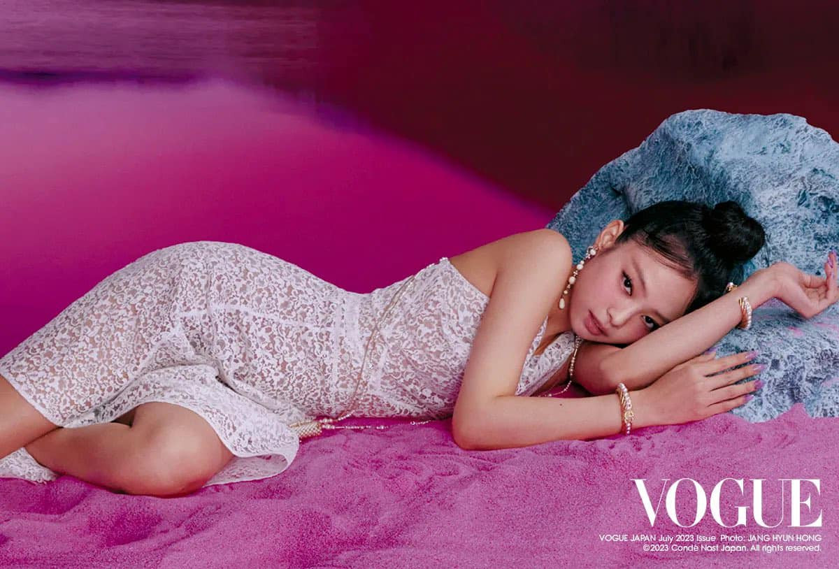 Jennie là thành viên BLACKPINK thứ hai có trang bìa riêng trên Vogue Nhật Bản, sau Lisa. Em út của BLACKPINK đã xuất hiện trên trang bìa của tạp chí này vào tháng 6 năm 2021.