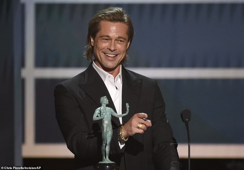 Tài tử 56 tuổi Brad Pitt nhận giải Nam diễn viên phụ xuất sắc nhất.