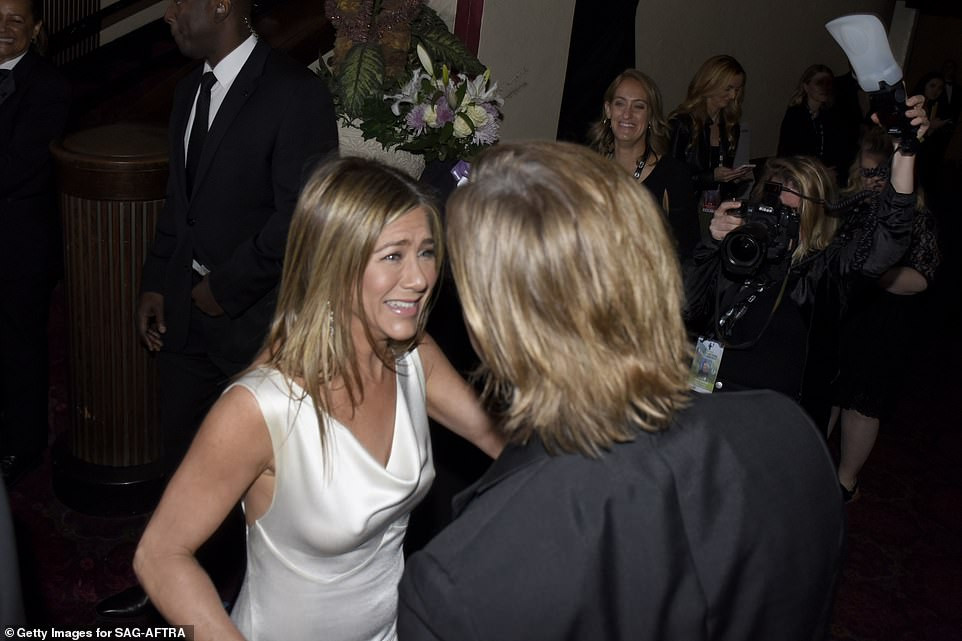 Jennifer Aniston mừng rỡ, xúc động phát khóc khi gặp lại chồng cũ.