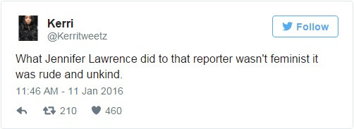 Chủ tài khoản Kerry cho rằng những gì Jennifer Lawrence đối xử với phóng viên nọ là thô lỗ và không tử tế.