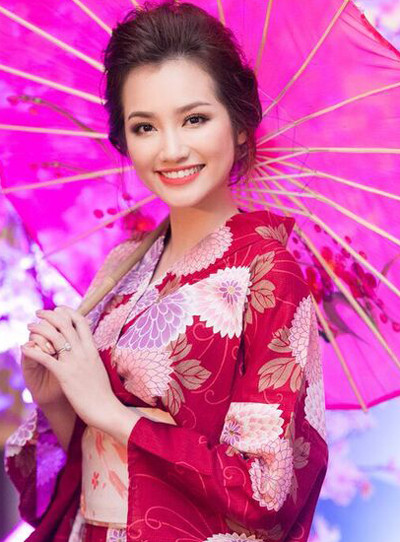 Người đẹp Trúc Diễm trang điểm nhẹ nhàng, tán khói mỏng ở đuôi mắt, tạo điểm nhấn khi kết hợp cùng trang phục rực rỡ.