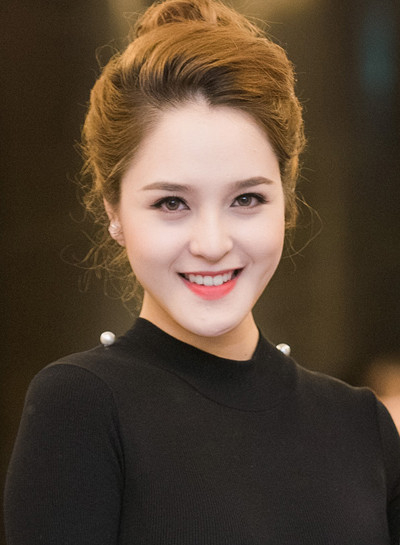 Á hậu Hoàng Anh tạo lớp nền nhẹ nhàng và nhấn nhá gương mặt bằng son môi cam nhạt.
