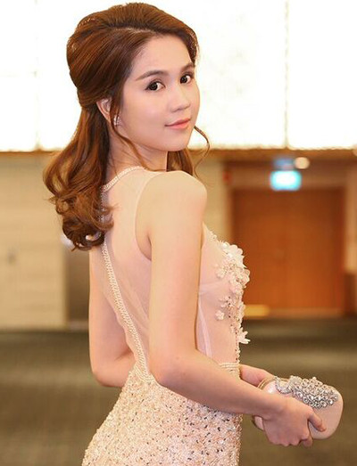 Ngọc Trinh chọn tông nude cho tổng thể, từ trang phục tới make-up. Màu son cam nude được kết hợp khéo léo với phấn mắt màu hồng nhạt, giúp người mẫu quyến rũ và đẹp nhẹ nhàng.