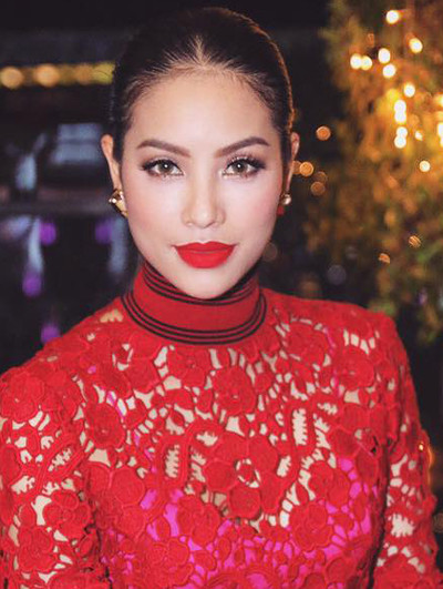 Chuyên gia trang điểm Tuyết Anh là người thực hiện gương mặt cho Phạm Hương trong các sự kiện gần đây. Với điểm nhấn là son môi đỏ rực, hài hòa trang phục, Phạm Hương trở nên quyến rũ, thanh lịch.