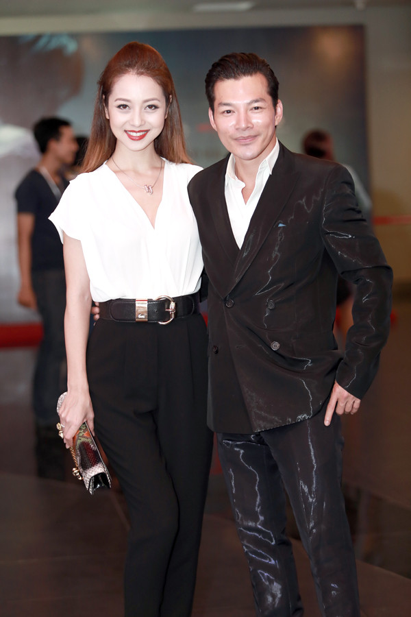 Mỹ nhân của showbiz Việt cùng chồng xuất hiện trong buổi ra mắt phim "Đoạt hồn" do Trần Bảo Sơn đóng vai chính.