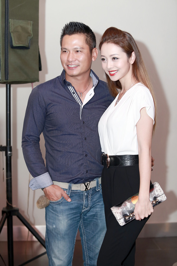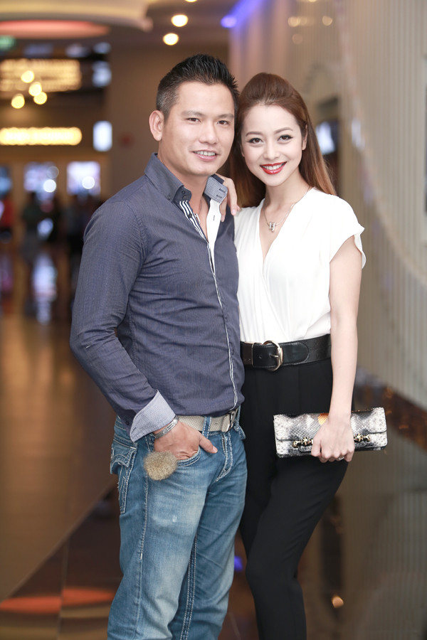 Vợ chồng Jennifer Phạm rạng rỡ sánh đôi đi xem phim.