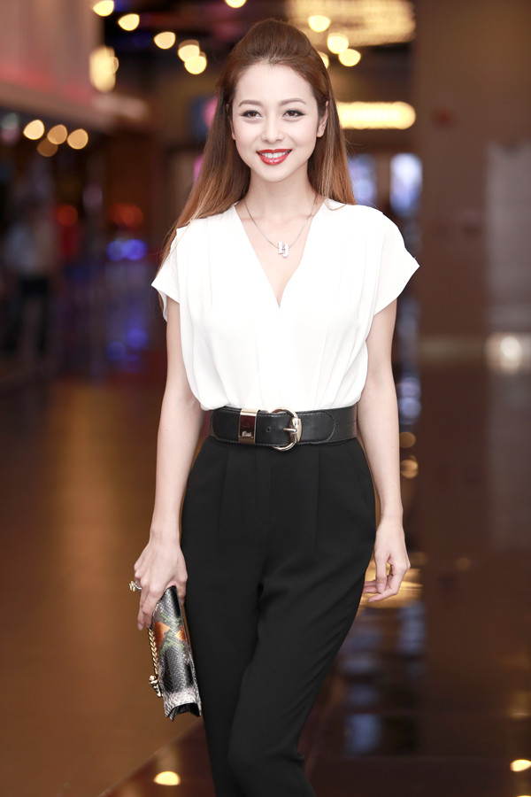 Jennifer Phạm mặc giản dị,  với gam màu trắng đen thanh thoát những vẻ đẹp của cô ngày càng rạng rỡ thể hiện sự viên mãn của người phụ nữ đang hưởng một hạnh phúc trọn vẹn.