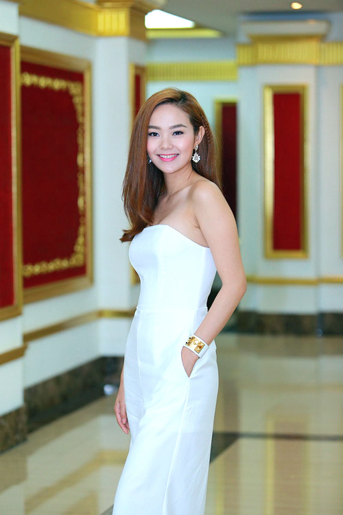 Minh Hằng dù mệt mỏi vì lịch làm việc dày đặc nhưng vẫn xuất hiện với vẻ rạng rỡ. Đêm qua, cô vừa hoàn thành đợt ghi hình cho 'Bước nhảy hoàn vũ nhí 2015' và sáng sớm hôm nay vội vàng bay ra Hà Nội để kịp có mặt trong sự kiện. 'Mỹ nhân của năm 2014' là thành viên thứ hai của gameshow.