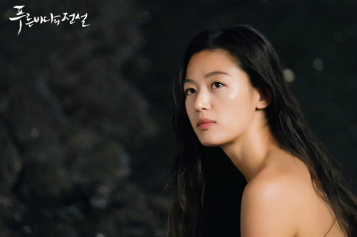 Đài SBS hé lộ tạo hình của nàng tiên cá Shim Chung và trailer series "Truyền thuyết biển xanh" ("The Legend of The Blue Sea") trên Soompi. Nhân vật của Jeon Ji Hyun xuất hiện với đôi vai trần giữa đầm sen.