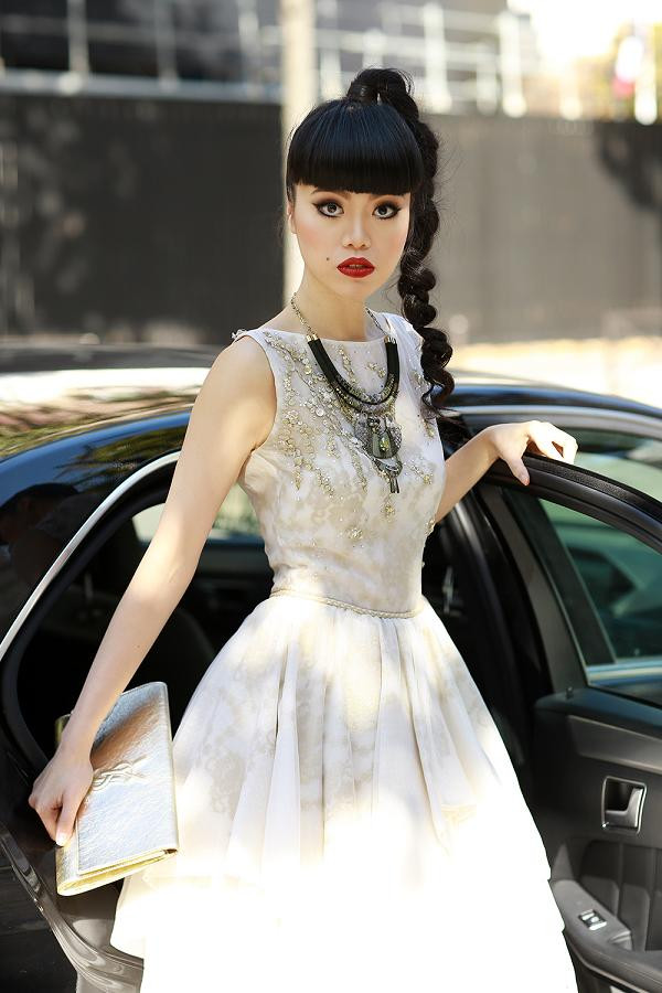 Jessica Minh Anh luôn có một gu thời trang ấn tượng và nổi bật mỗi khi tới tham dự các show diễn.