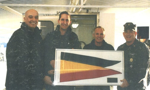 Hai bức ảnh đính kèm bản báo cáo trên còn cho thấy hạm trưởng Brian Elkowitz của tàu cùng các quan chức khác đang cầm trên tay tấm cờ hiệu được đóng khung. Một người xuất hiện trong cả hai bức ảnh bị che mặt, dường như là vì lý do cá nhân.