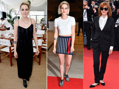 Mệt mỏi với các quy định về trang phục dạ hội và giày cao gót, nhiều ngôi sao lựa chọn ăn mặc thoải mái tại Cannes năm nay giống Julia Roberts. Kristen Stewart xuất hiện trong buổi họp báo phim Cafe Society với váy hai dây đơn giản màu đen và kết hợp cùng giày lười. Trong đêm khai mạc Liên hoan phim, Kristen Stewart cũng mặc áo crop-top, chân váy mini và đi giày thể thao.