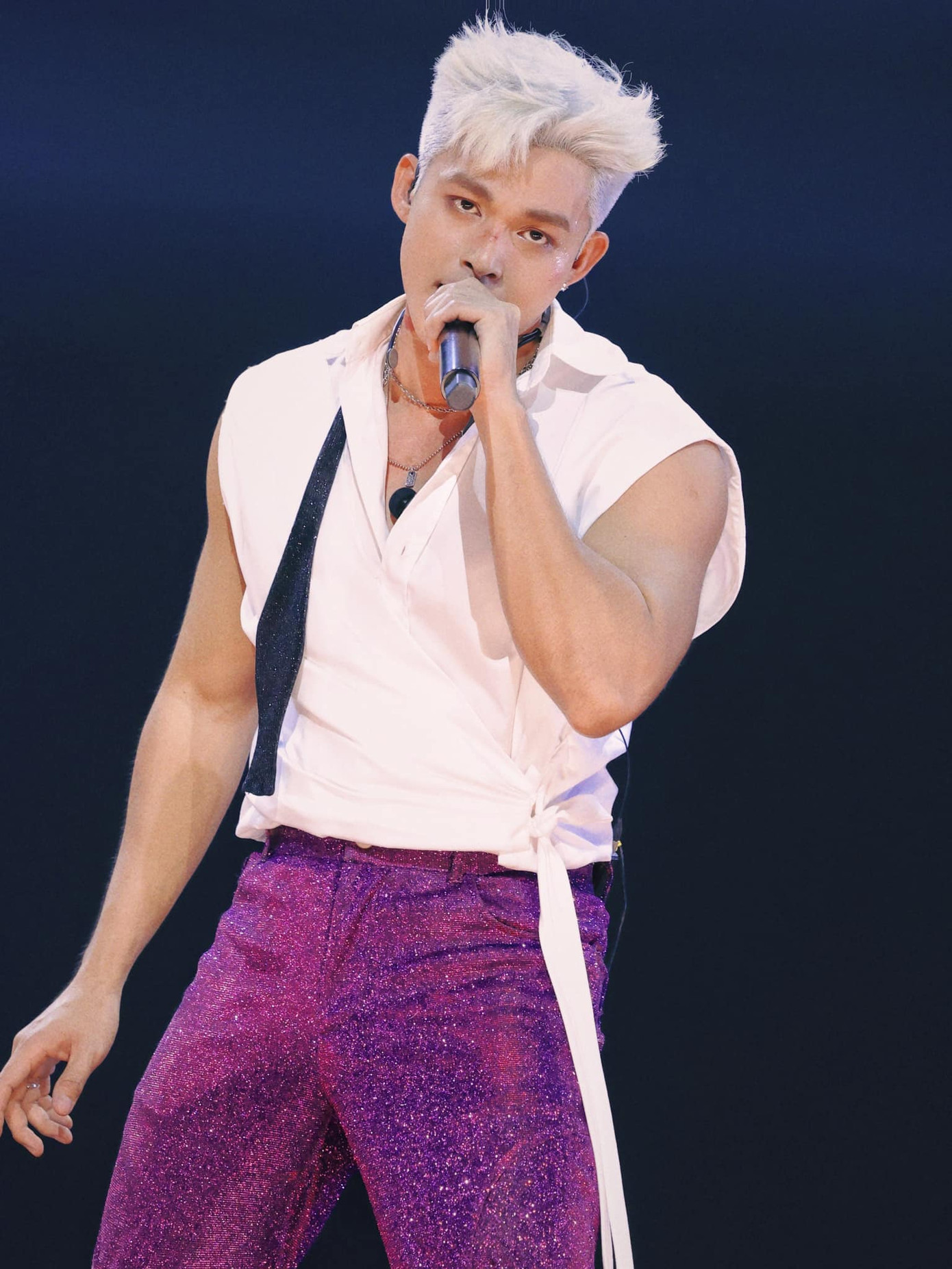 Tuy nhiên, theo stylist, khi kết hợp phong cách disco trong loại vải tím lấp lánh sẽ xuất hiện "một Jun Phạm khác biệt trước kia với mái tóc trắng, bộ suit bắt mắt, hơi xộc xệch như vừa hết mình ở một buổi party nào đó, và anh ấy tiếp tục hết mình tăng 2 trên sân khấu cho đến khi nằm lăn ra."