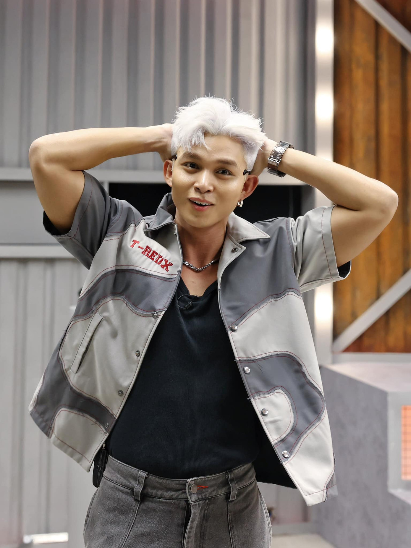 | Không chọn màu đen truyền thống, Jun Phạm nhuộm nhiều màu tóc nổi bật khi đến với Anh Trai Vượt Ngàn Chông Gai. |