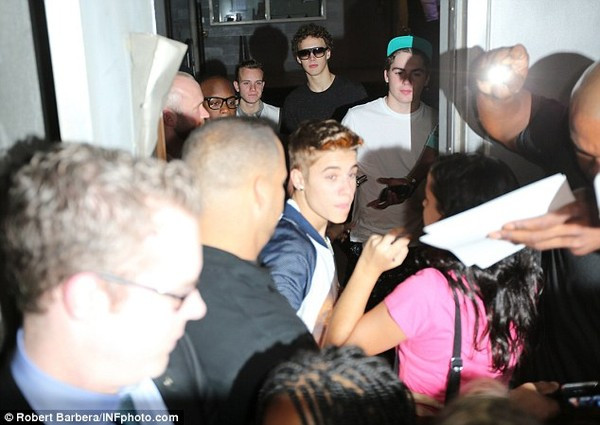 Trong buổi tối cùng ngày, sau khi rời khỏi khách sạn, anh chàng cũng bị đông đảo các fan nữ vây kín và xếp thành hàng dài đợi Justin đi ra khỏi cửa để xin chữ ký và chụp ảnh kỷ niệm. Tuy nhiên, Justin không hề né tránh mà còn rất thân thiện nán lại giao lưu vui vẻ với các fan.