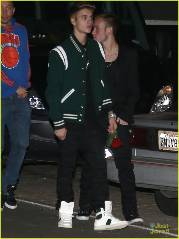 Tuy nhiên, điều fan ngạc nhiên là Justin chỉ cầm theo đúng một bông hoa hồng đỏ khá lãng mạn để tặng Selena, điều này khá ‘ngoan hiền’ với tính cách ngông cuồng của Justin.