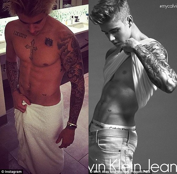 Cơ bụng 6 múi của Justin trong bức ảnh vừa chụp hoàn toàn giống so với loạt hình quảng cáo cho Calvin Klein.