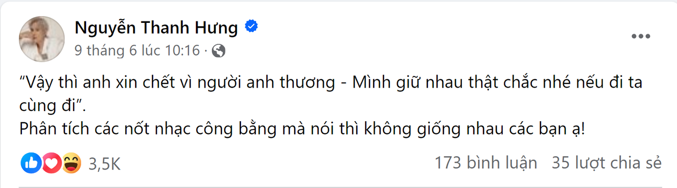 Nam ca sĩ chia sẻ: "Nếu là đoạn này thì các bạn nói na ná giống 'việc của em là yêu anh…' (điệp khúc của Đúng Người Đúng Thời Điểm) thì cũng không sai. Nhưng cũng chỉ 3-4 nốt thì không đáng để bàn luận quá nhiều. Bởi việc các bài hát trùng số nốt với nhau là bình thường".