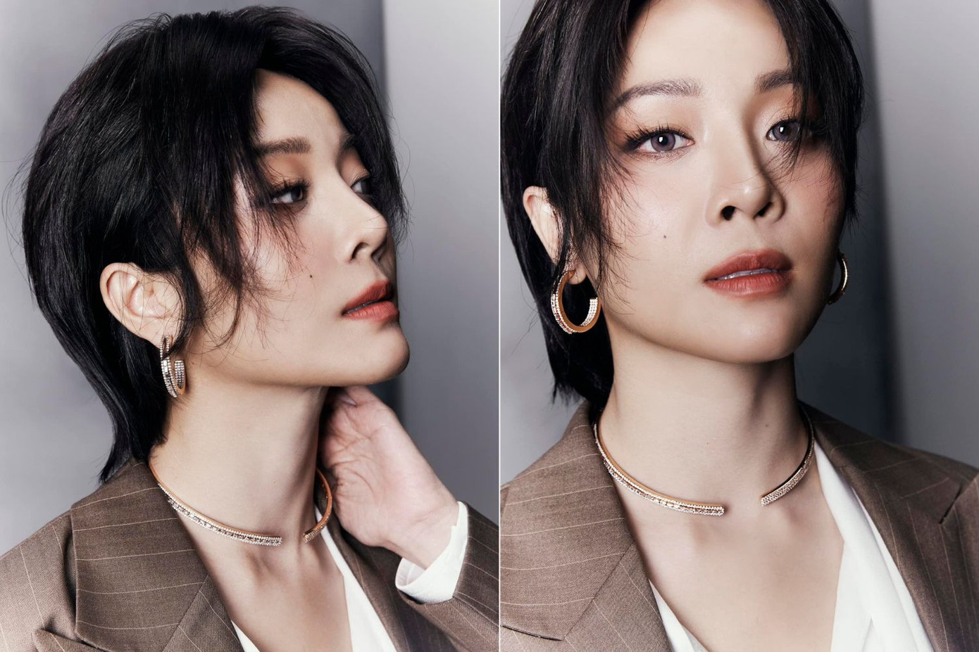 Trong bộ ảnh đầu tiên, nữ diễn viên cực "bảnh", thích thú nhận xét bản thân: "Sai quá ạ... sai đẹp chiêu". Cô khoác lên bộ menswear có tông màu nâu trầm, kiểu trang điểm có phần đậm đà càng tăng thêm nét nam tính mạnh mẽ. Nữ diễn viên chia sẻ đây như lời khẳng định về việc cô đang "phá bỏ" những giới hạn để đón nhận một phiên bản hoàn toàn mới của chính mình.