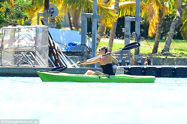 Tại đây siêu mẫu sở hữu thân hình ‘cò hương’ đã không ngại ngần thả rông vòng một khi nằm phơi nắng trên bãi biển.
