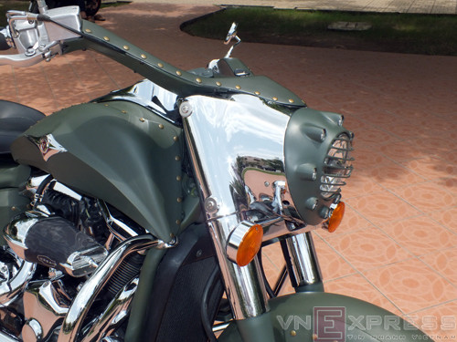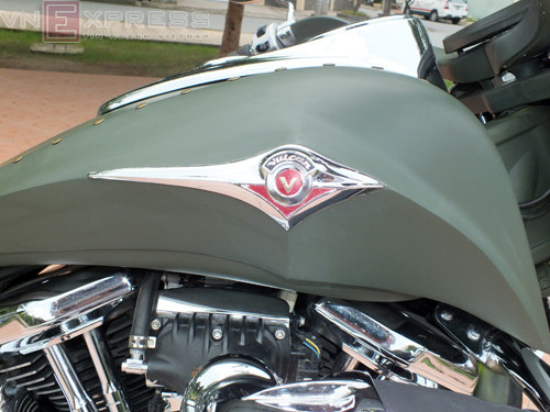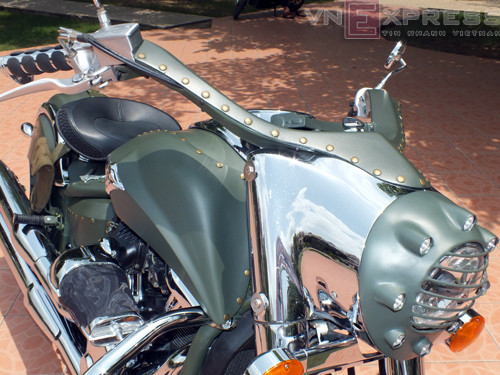 Quá trình độ xe trong gần 2 tháng với toàn bộ phần thân thiết kế lại và sơn màu xanh lá nhám quân đội. Chóa đèn pha ốp thêm dãy đèn LED nhằm tăng thêm sự bắt mắt, cổ xe cũng ốp thêm nhựa, giữa tay lái là sự xuất hiện băng đựng đạn của súng AK. Yên thay thế bằng kiểu yên ngựa phong cách cao bồi. Ngoài ra còn gắn thêm một số đồ như túi vải mang phong cách nhà binh. Riêng khối động cơ khổng lồ Vulcan 2000 vẫn giữ nguyên.