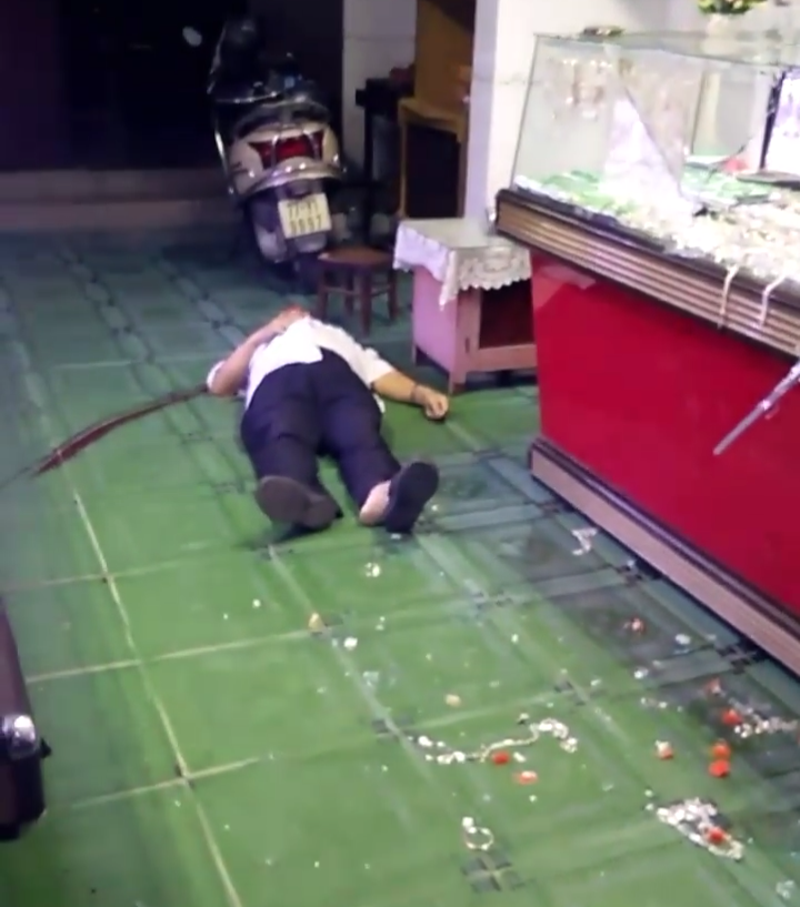 Kẻ gian đã dùng búa đánh ngất xỉu chủ tiệm vàng.