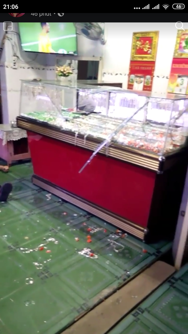 Theo người dân cho biết, thời điểm xảy ra vụ việc chỉ có hai vợ chồng chủ tiệm vàng ở tại tiệm. Kẻ gian đã dùng búa tấn công hai vợ chồng và đập vỡ tủ kính và lấy đi một số vàng bạc.