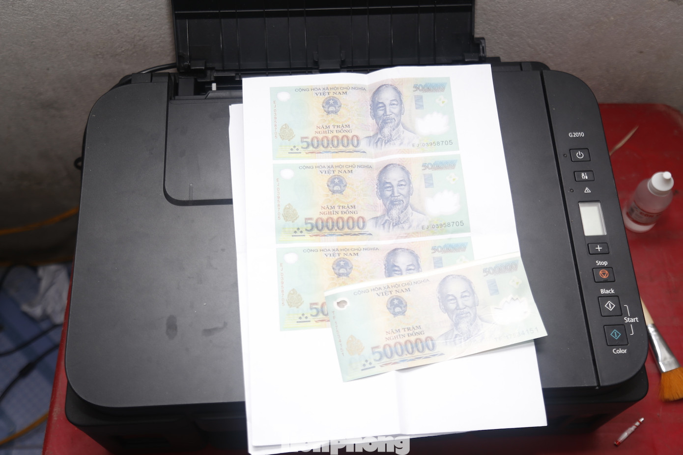 Máy móc, thiết bị, nguyên liệu in tiền giả đều là thiết bị thông thường, dễ mua trên thị trường - Ảnh: Hoàng Long Tuy nhiên, từ "xưởng in tiền" tuềnh toàng này, Tác và Phương đã in và bán ra gần1 tỷ đồng tiền giả cho 113 "đối tác" ở 38 tỉnh, thành phố trên cả nước với mức giá 1 triệu tiền thật đổi được 5-6 triệu đồng tiền giả. Số tiền mà 2 đối tượng này thu về từ bán gần 1 tỷ tiền giả 135 triệu đồng tiền thật.
