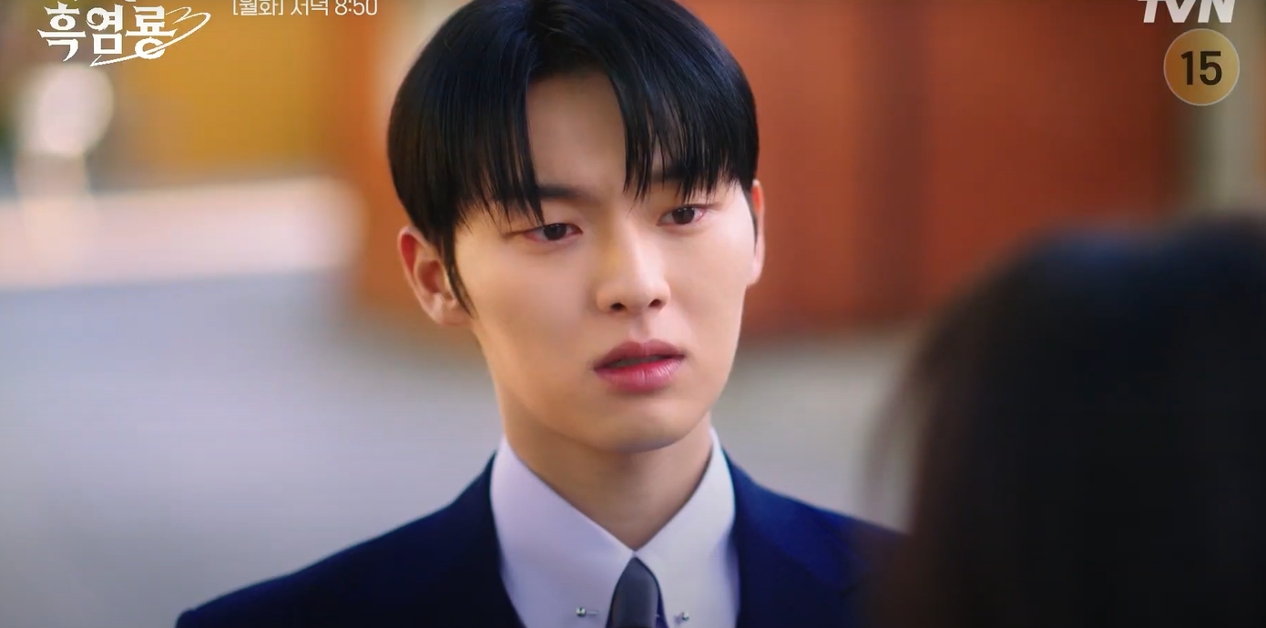 | Su Jeong giơ chiếc vòng cổ ra trước mặt Ju Yeon, khẳng định anh chính là Hắc Viêm Long. |