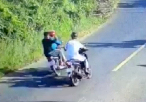 Nam công an viên bị kẻ trộm gà bắn ná thun khi áp sát xe. Ảnh: Cắt từ camera.