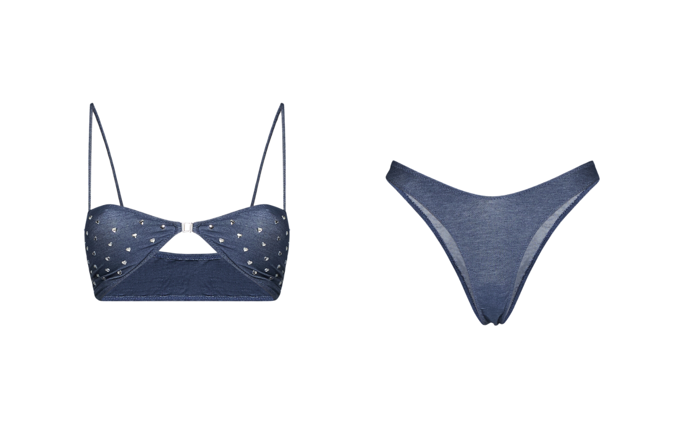 | Những bộ bikini được làm bằng chất liệu metallic mang đến hiệu ứng óng ả. |