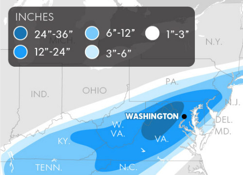 Cơn bão có thể phá một số kỷ lục trước đây, khi lượng tuyết trút xuống ở Washington có thể vượt qua mức 17,8 inch (45,2 cm) của cơn bão năm 2010 và tổng lượng tuyết rơi có thể cạnh tranh với mức kỷ lục 71,12 cm của cơn bão năm 1922.