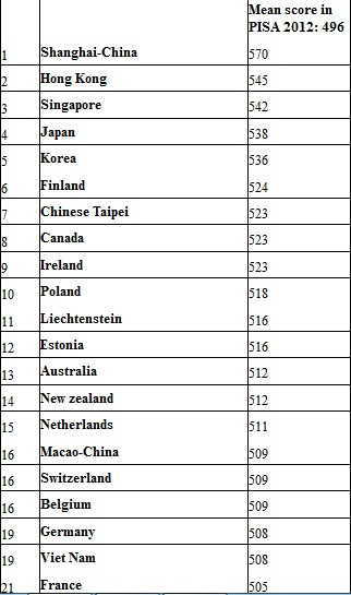 Phân tích về kết quả đạt được của học sinh Việt Nam tại kỳ thi PISA, theo Thứ trưởng Nguyễn Minh Hiển, lĩnh vực Toán học là lĩnh vực trọng tâm của kỳ PISA 2012. Việt Nam đứng thứ 17/65. Điểm trung bình Mean Score là 494 thì Việt Nam đạt 511. Như vậy, năng lực Toán học của HS VN ở top cao hơn chuẩn năng lực của OECD.