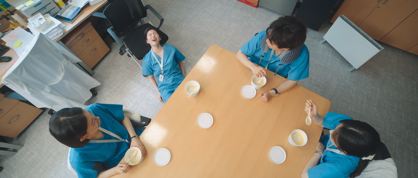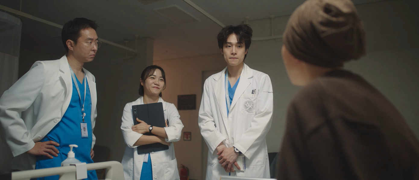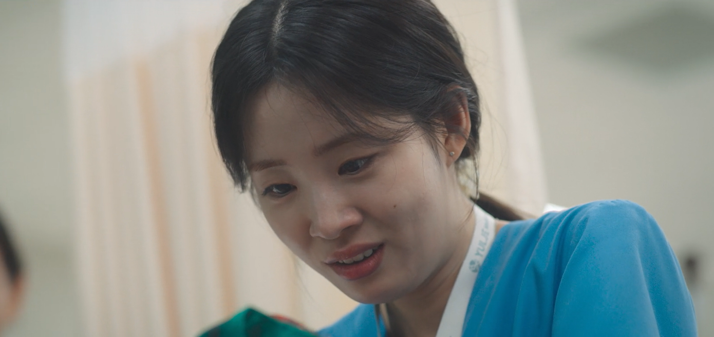 Nam Kyung vừa tiễn đưa một bệnh nhân, rồi lại đón một sinh mệnh chào đời bình an ở sảnh cấp cứu, chỉ cách nhau vài giường bệnh. Những khung hình ở phân đoạn này lấy nước mắt và khiến khán giả thở phào cùng lúc, đậm chất điện ảnh.
