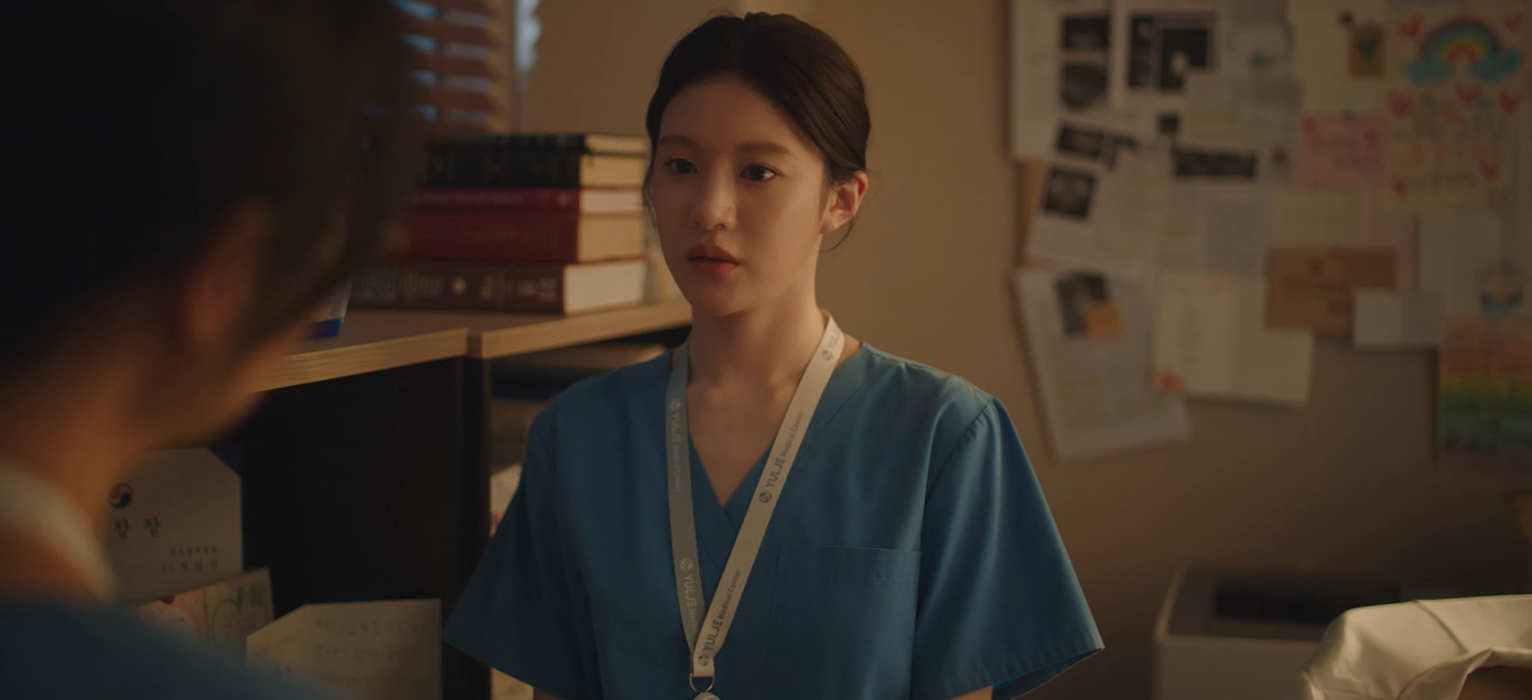 Cô cố nén để trả lời thăm hỏi cuối cùng của em trai chị Mi So, sau đó chạy đến một góc của quầy trực mà khóc nức nở. Mà nỗi đau này đã được báo trước ở cảnh bác sĩ nội trú năm hai Ki Eun Mi khóc lặng đi khi chứng kiến bệnh nhân đầu tiên của cô qua đời.