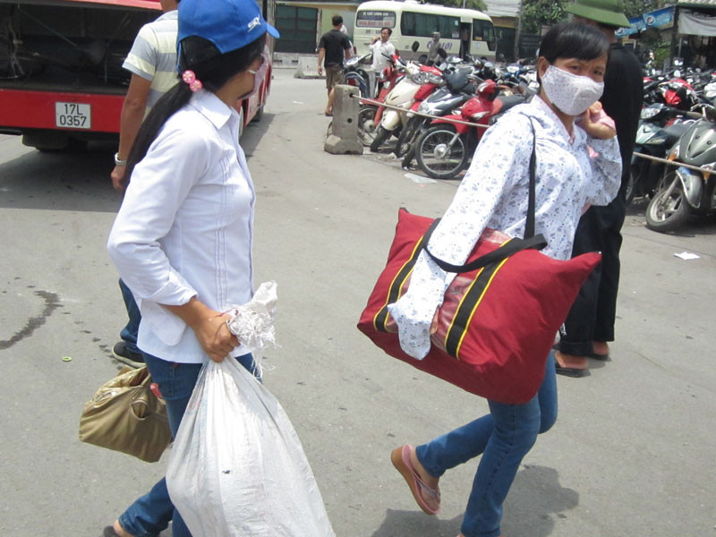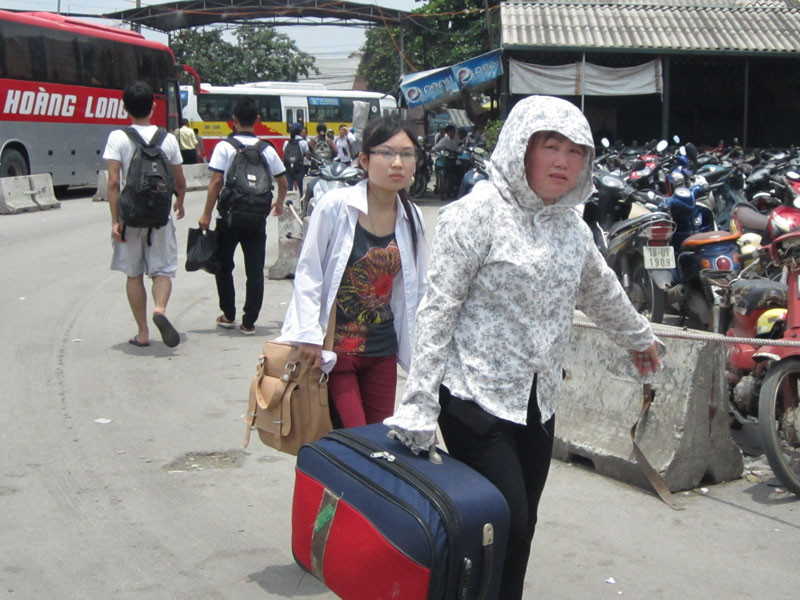 | Bến xe chật kín người chờ để chiều có thể lên được chuyến sớm nhất về nhà. |