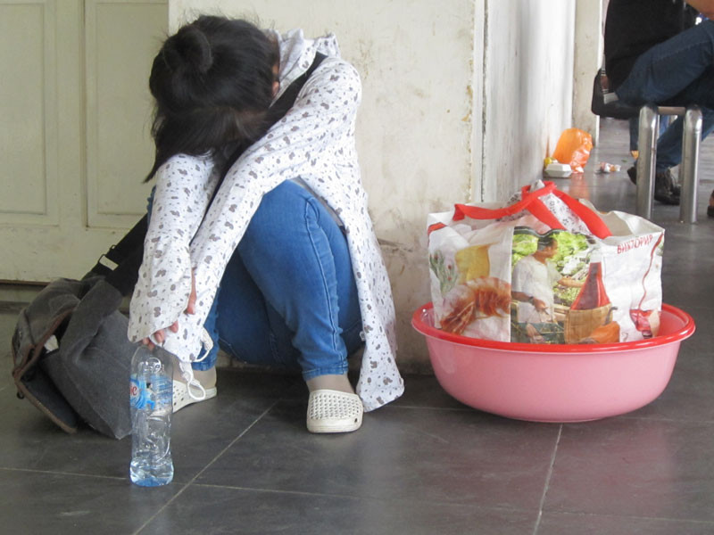 | Phụ huynh cũng mệt mỏi không kém, nhiều người không về kịp chuyến xe đã phải nghỉ lại . |