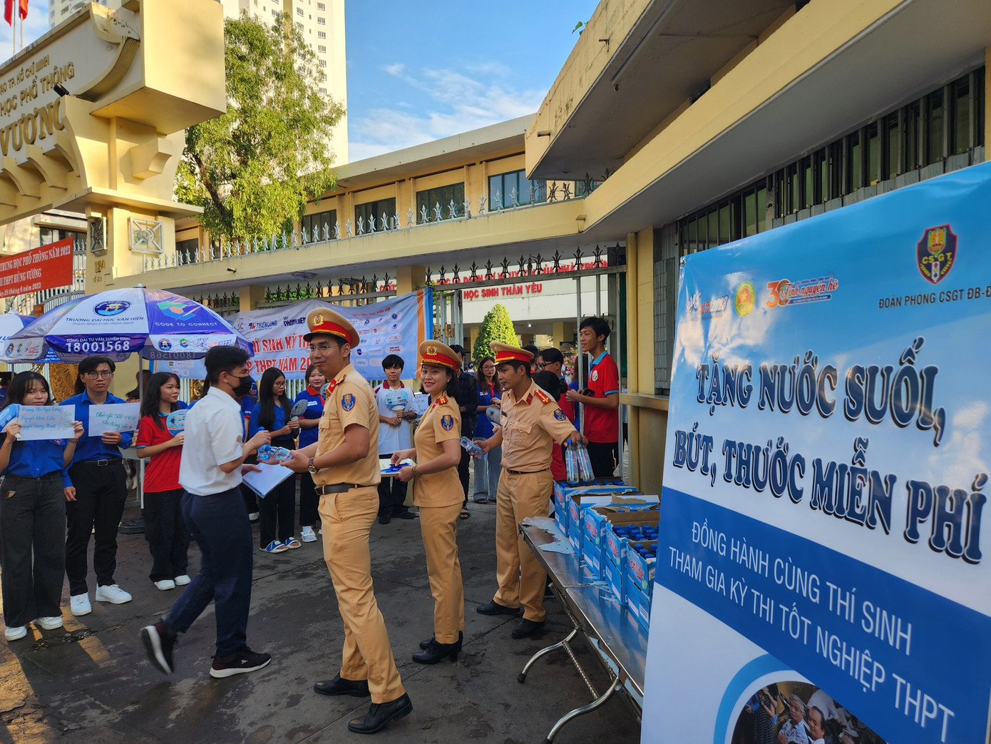 Riêng tại các điểm thi, ngoài việc đảm bảo an toàn giao thông trước cổng trường, các chiến sỹ còn tặng nước suối, bút viết, tờ rơi tuyên truyền cho các phụ huynh trong khi chờ đón con. Các hoạt động này đều được đơn vị duy trì và thực hiện xuyên suốt trong thời gian qua.