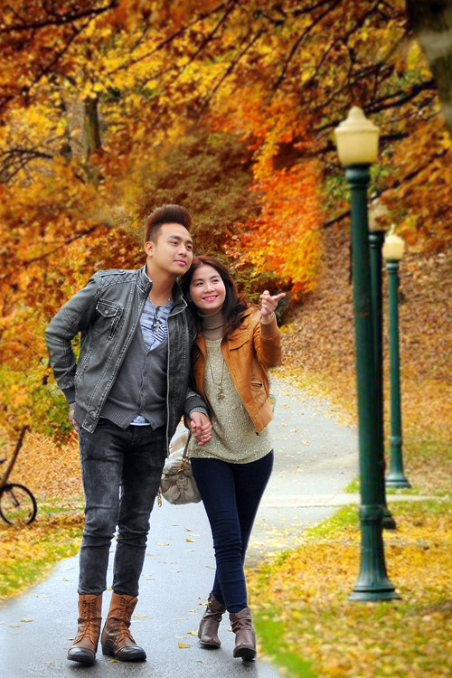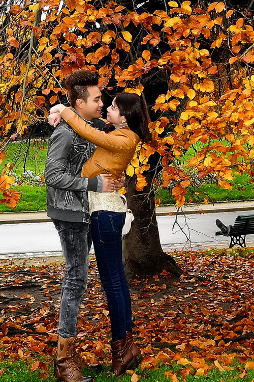 Những thảm lá vàng của nước Pháp tạo nên khung cảnh lãng mạn cho bộ ảnh cưới.