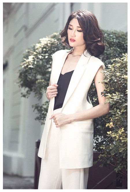 Tông màu trắng đen năm nay vẫn chưa hạ nhiệt. Sự tinh tế trong phong cách menswear thể hiện qua việc lựa chọn những trang phục có thiết kế tối giản. Gilet dáng dài phù hợp với những cô gái chuộng hình ảnh phóng khoáng nhưng thanh lịch.